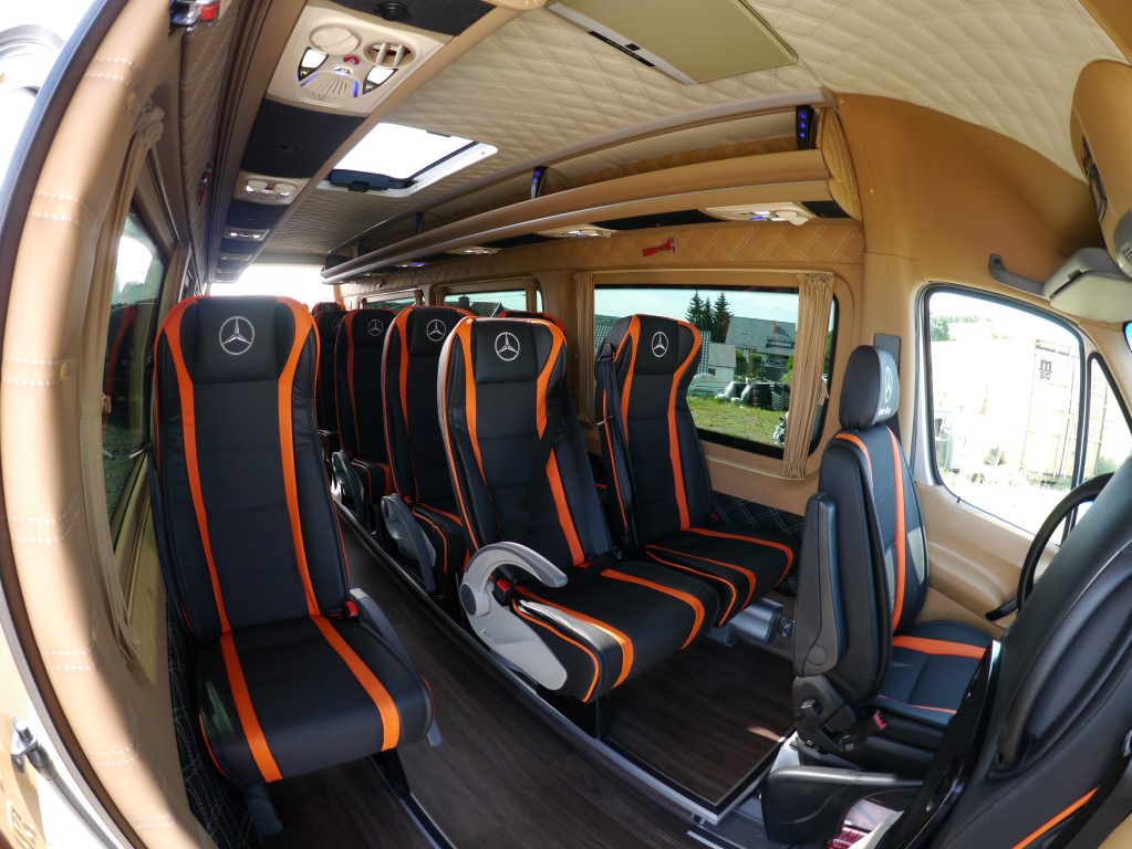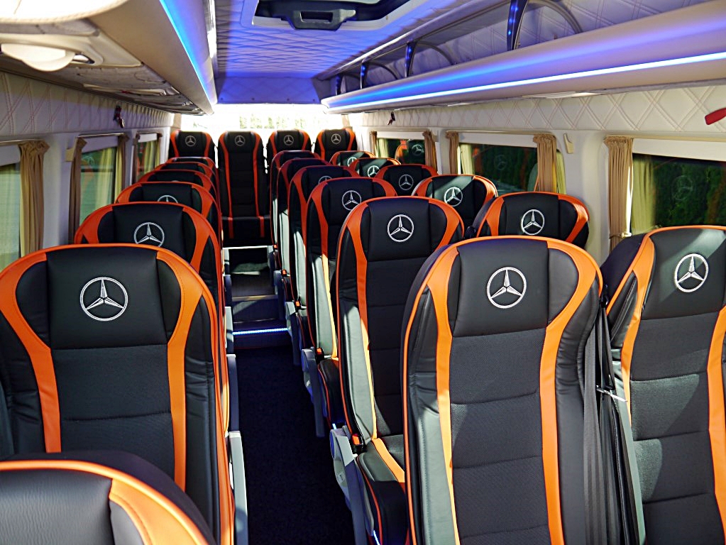 Nowy Sprinter 519 – wersja turystyczna VIP, posiada normę spalin Euro 6. Wygodny bus z bogatym wyposażeniem dla mniejszych grup zorganizowanych, wyjazdów biznesowych.
